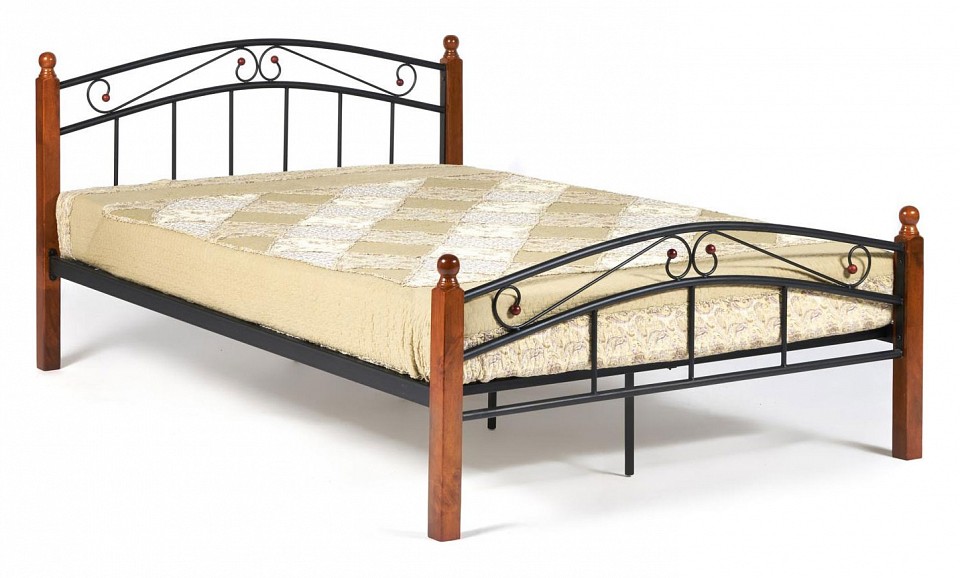 Кровать AT-8077 Wood slat base дерево гевея/металл, 140*200 см (Double bed), красный дуб/черный